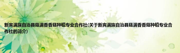 本文关于新宾满族自治县菇满香香菇种植专业合作社的简介就讲解完毕,希望对大家有所帮助。