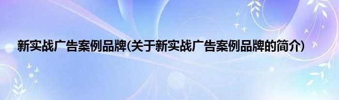 新实战广告案例品牌(关于新实战广告案例品牌的简介)