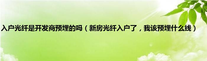 大家好,小常来为大家解答以上问题。入户光纤是开发商预埋的吗,新房光纤入户了,我该预埋什么线很多人还不知道,现在让我们一起来看看吧!