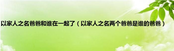 大家好,小常来为大家解答以上问题。以家人之名爸爸和谁在一起了,以家人之名两个爸爸是谁的爸爸很多人还不知道,现在让我们一起来看看吧!
