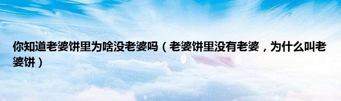 大家好,小常来为大家解答以上问题。你知道老婆饼里为啥没老婆吗,老婆饼里没有老婆,为什么叫老婆饼很多人还不知道,现在让我们一起来看看吧!