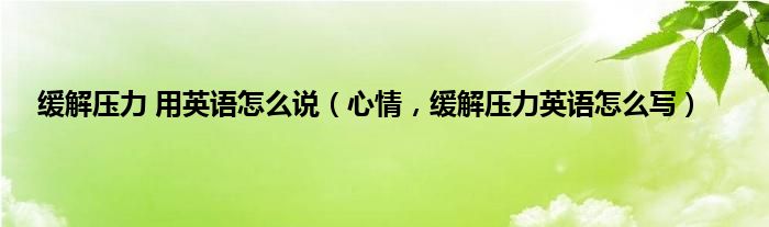 大家好,小常来为大家解答以上问题。缓解压力 用英语怎么说,心情,缓解压力英语怎么写很多人还不知道,现在让我们一起来看看吧!