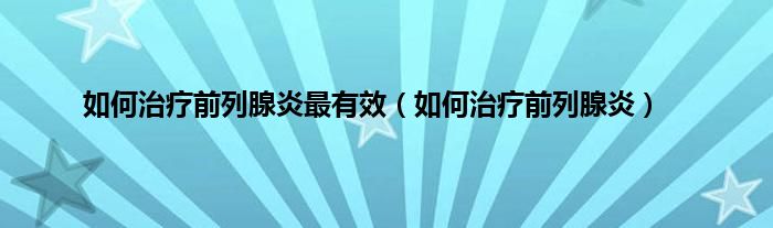 大家好,小科来为大家解答以上问题。如何治疗前列腺炎最有效,如何治疗前列腺炎很多人还不知道,现在让我们一起来看看吧!