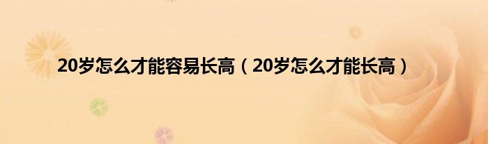 大家好,小科来为大家解答以上问题。20岁怎么才能容易长高,20岁怎么才能长高很多人还不知道,现在让我们一起来看看吧!