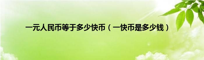 大家好,小常来为大家解答以上问题。一元人民币等于多少快币,一快币是多少钱很多人还不知道,现在让我们一起来看看吧!