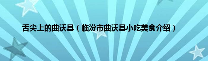 大家好,小常来为大家解答以上问题。舌尖上的曲沃县,临汾市曲沃县小吃美食介绍很多人还不知道,现在让我们一起来看看吧!