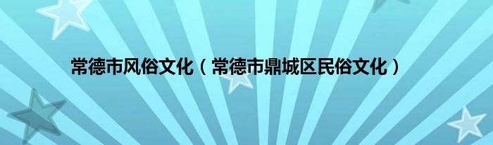 常德市风俗文化(常德市鼎城区民俗文化)