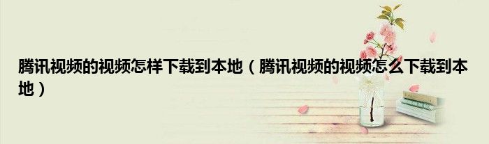 腾讯视频的视频怎样下载到本地(腾讯视频的视频怎么下载到本地)