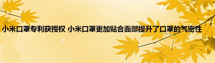 今天来聊聊一篇关于小米口罩专利获授权 小米口罩更加贴合面部提升了口罩的气密性的文章,现在就为大家来简单介绍下小米口罩专利获授权 小米口罩更加贴合面部提升了口罩的气密性,希望对各位小伙伴们有所帮助。