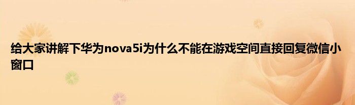 弟哥来分享下咱们的给大家讲解下华为nova5i为什么不能在游戏空间直接回复微信小窗口相关内容,那么给大家讲解下华为nova5i为什么不能在游戏空间直接回复微信小窗口这个内容希望是您想要的,一起来看看吧: