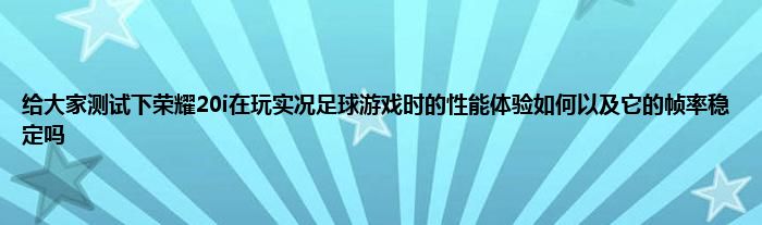 弟哥来分享下咱们的这个测试下荣耀20i在玩实况足球游戏时的性能体验如何以及它的帧率稳定吗相关问题,这样的测试下荣耀20i在玩实况足球游戏时的性能体验如何以及它的帧率稳定吗问题相信很多人都是想知道的,一起来看看吧。