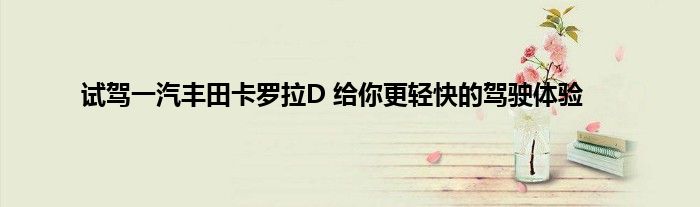 今天来分享一篇个人对试驾一汽丰田卡罗拉D 给你更轻快的驾驶体验相关分析,众所周知,无论是在坊间民众,还是在汽车媒体的议论中,都是不错的,至于产品到底香不香,通过测试还是可以对试驾一汽丰田卡罗拉D 给你更轻快的驾驶体验的产品力分析分析的,一起来看看吧