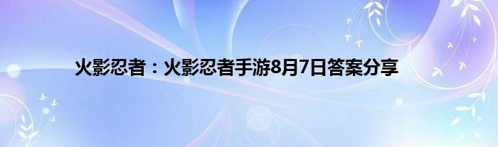 小编今天给各位玩家朋友们带来的是火影忍者:火影忍者手游8月7日答案分享,有记得的玩家朋友吗?不记得也没有关系,小编已经帮助大家把火影忍者:火影忍者手游8月7日答案分享找了出来,你只需要动动你的小手就可以轻松知道啦,快来瞧一瞧吧。