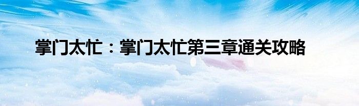 小编今天给各位玩家朋友们带来的是掌门太忙:掌门太忙第三章通关攻略,有记得的玩家朋友吗?不记得也没有关系,小编已经帮助大家把掌门太忙:掌门太忙第三章通关攻略找了出来,你只需要动动你的小手就可以轻松知道啦,快来瞧一瞧吧。