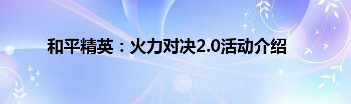 小编今天给各位玩家朋友们带来的是和平精英:火力对决2.0活动介绍,有记得的玩家朋友吗?不记得也没有关系,小编已经帮助大家把和平精英:火力对决2.0活动介绍找了出来,你只需要动动你的小手就可以轻松知道啦,快来瞧一瞧吧。