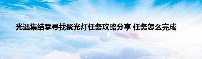 光遇集结季当中给玩家带来了丰富的玩法,其中还有一些任务等待玩家来完成,这些任务在里面也是比较故意思的,这里就有一个追寻聚光灯的任务,很多玩家不知道的这个任怎么做?下面就让小编给玩家带来集结季追寻聚光灯任务攻略的介绍,希翼能够给需要的玩家带来帮助吧。