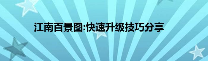 小编今天给各位玩家朋友们带来的是江南百景图:快速升级技巧分享,有记得的玩家朋友吗?不记得也没有关系,小编已经帮助大家把江南百景图:快速升级技巧分享找了出来,你只需要动动你的小手就可以轻松知道啦,快来瞧一瞧吧。