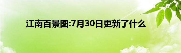 小编今天给各位玩家朋友们带来的是江南百景图:7月30日更新了什么,有记得的玩家朋友吗?不记得也没有关系,小编已经帮助大家把江南百景图:7月30日更新了什么找了出来,你只需要动动你的小手就可以轻松知道啦,快来瞧一瞧吧。