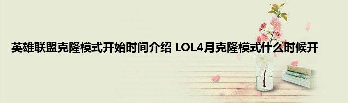英雄联盟克隆模式开始时间介绍 LOL4月克隆模式什么时候开