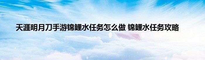 天涯明月刀手游锦鲤水任务攻略