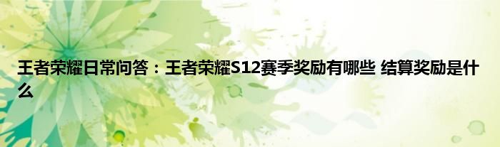 问:王者荣耀S12赛季奖励有哪些?S112季结算奖励是什么?