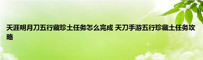 天涯明月刀五行藏珍土任务怎么完成天刀手游五行珍藏土任务攻略
