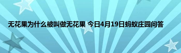 无花果为什么被叫做无花果,今日4月19日蚂蚁庄园问答,欢迎大家来到这里,能进来的小伙伴都有玩蚂蚁庄园的,支付宝蚂蚁庄园每天都会在小课堂更新一道题目,答对即可领取小鸡饲料180G,4月19日蚂蚁庄园问题是:无花果为什么被叫做无花果?很多小伙伴都不知道无花果为什么被叫做无花果这个问题的答案是什么,那么小编就为大家分享下4月19日蚂蚁庄园课题问题的答案,希望对大家有所帮助!
