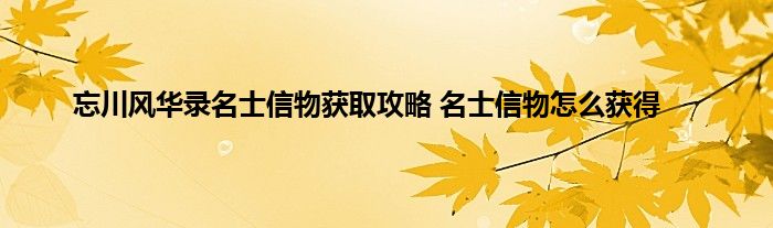忘川风华录名士信物获取方式汇总
