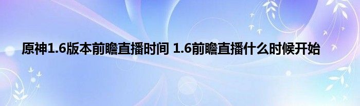 原神1.6前瞻直播什么时候开始呢,原神1.6版本马上上线,很多玩家不知道1.6会有什么内容,官方为此准备了1.6的前瞻直播,会介绍一些1.6马上登场的内容,还会发放一些福利,下面就来尾随小编一起来看看详细的攻略内容吧。