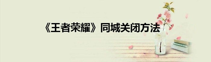 感谢你在百忙之中抽出时间阅读《王者荣耀》同城关闭方法这篇文章。你觉得今天《王者荣耀》同城关闭方法话题怎么样?关于《王者荣耀》同城关闭方法这篇文章的任何评论都可以告诉我。你的每一个建议都是对小编辑的肯定和鼓舞。小编明天会继续给你带来更多的好内容。我希翼你不要错过。感谢支持哟!