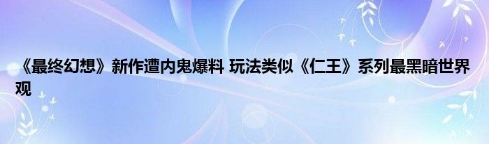 既然是从黑暗之魂得来的灵感,背景设定上也和传统的《最终幻想》不同。知情人士表示,这款新作会是系列剧情最黑暗与暴力的一作,世界观的设定上也类似《最终幻想1》 。