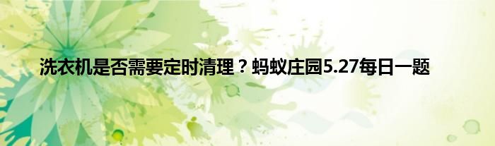 大家好,今天是5月27日,今天蚂蚁庄园中有一个问题和生活小常识有关,洗衣机大家经常使用,今天的问题是洗衣机是否需要定时清理?那么问题的答案是什么呢,答对的可以获得小鸡饲料用来喂养小鸡,小编收集和整理了相关答案以及解析,下面一起来看看吧!