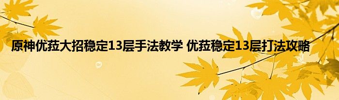 原神优菈大招稳定13层手法教学 优菈稳定13层打法攻略