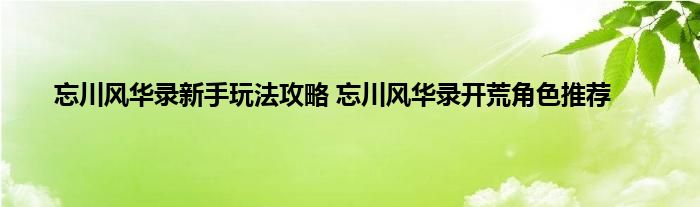 *忘川风华录开荒角色推荐