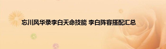 忘川风华录李白阵容搭配攻略