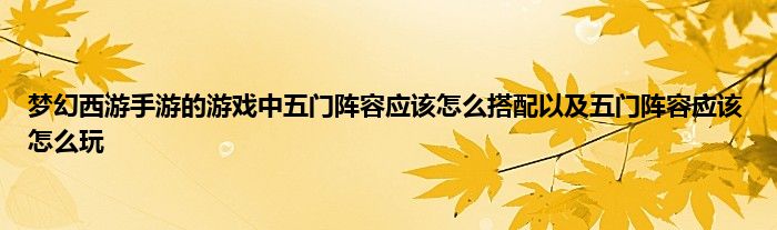 今天弟哥来聊聊一篇关于梦幻西游的手游的游戏中五门阵容应该怎么搭配以及五门阵容应该怎么玩的文章,游戏是很多人的选择,但是游戏玩多了也会身心疲惫,现在就为大家来简单介绍下梦幻西游的手游的游戏中五门阵容应该怎么搭配以及五门阵容应该怎么玩,希望对各位小伙伴们有所帮助。