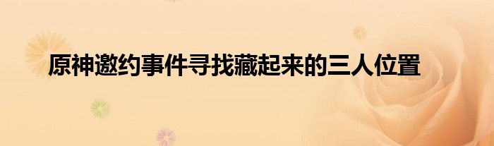 原神3月17日更新后,有很多新的剧情任务,其中就有邀约事件中的一些任务。邀约事件寻找藏起来的三人在哪?邀约事件中有个任务是寻找藏起来的三人,但是很多玩家都找不到在哪里,下面爪游控为大家带来原神邀约事件寻找藏起来的三人位置图。