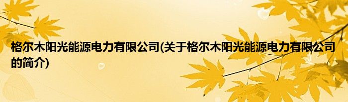 本文关于格尔木阳光能源电力有限公司的简介就讲解完毕,希望对大家有所帮助。