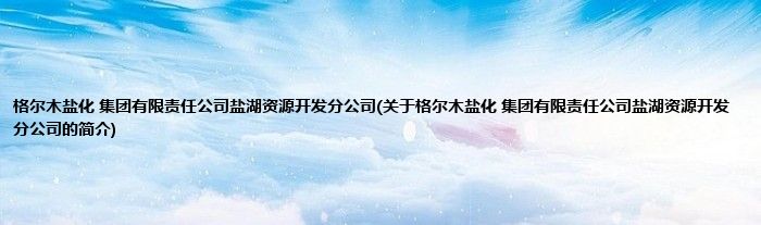 格尔木盐化 集团有限责任公司盐湖资源开发分公司(关于格尔木盐化 集团有限责任公司盐湖资源开发分公司的简介)