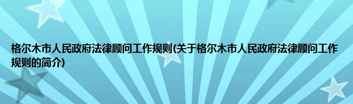 格尔木市人民政府法律顾问工作规则(关于格尔木市人民政府法律顾问工作规则的简介)