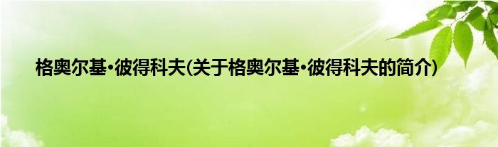 大家好,格奥尔基·彼得科夫,关于格奥尔基·彼得科夫的简介很多人还不知道,现在让我们一起来看看吧!