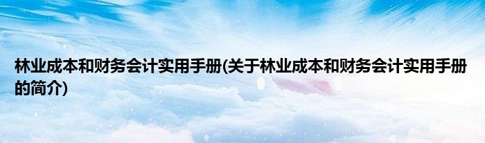 本文关于林业成本和财务会计实用手册的简介就讲解完毕,希望对大家有所帮助。