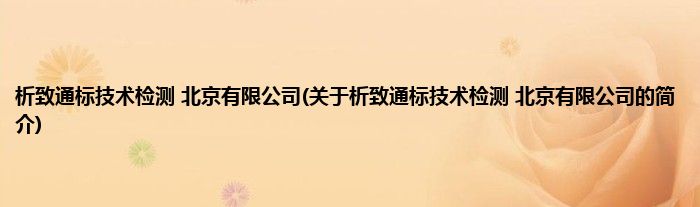 本文关于析致通标技术检测 北京有限公司的简介就讲解完毕,希望对大家有所帮助。