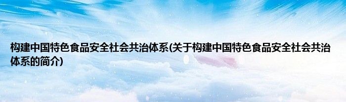 大家好,构建中国特色食品安全社会共治体系,关于构建中国特色食品安全社会共治体系的简介很多人还不知道,现在让我们一起来看看吧!