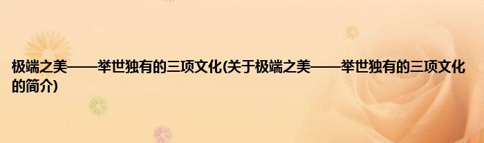极端之美——举世独有的三项文化(关于极端之美——举世独有的三项文化的简介)