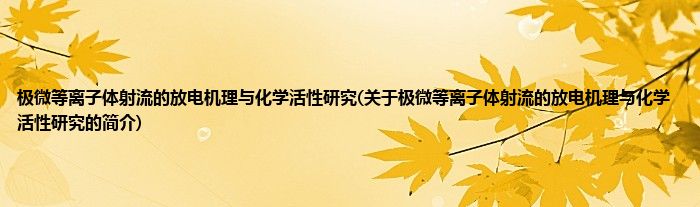 本文关于极微等离子体射流的放电机理与化学活性研究的简介就讲解完毕,希望对大家有所帮助。