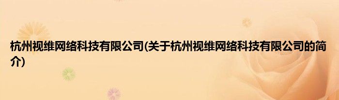 本文关于杭州视维网络科技有限公司的简介就讲解完毕,希望对大家有所帮助。