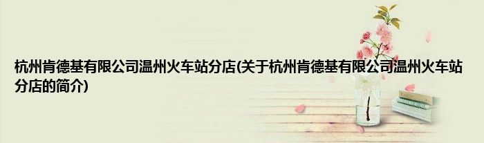 杭州肯德基有限公司温州火车站分店(关于杭州肯德基有限公司温州火车站分店的简介)