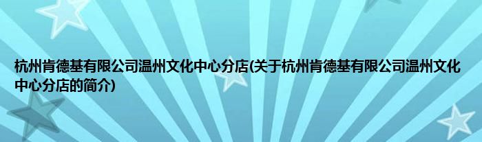 杭州肯德基有限公司温州文化中心分店(关于杭州肯德基有限公司温州文化中心分店的简介...