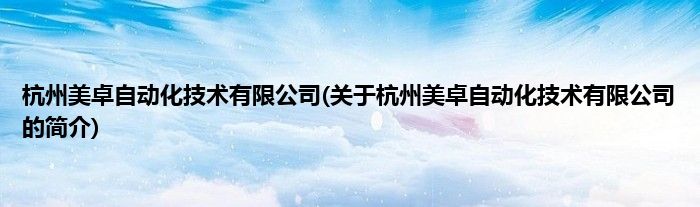 杭州美卓自动化技术有限公司(关于杭州美卓自动化技术有限公司的简介)